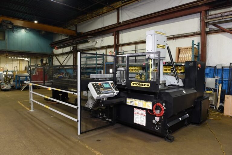 La V-18APC-60-60 es una sierra de cinta vertical automática con capacidad para cortar en inglete desde 60° a la izquierda hasta 60° a la derecha. Puede elegir una entrada lateral izquierda o derecha. Un cabezal inclinado fijo de 3 grados permite un corte más eficiente y una mayor vida útil de la hoja al cortar vigas más grandes, acero estructural y paquetes de tubos cuadrados.